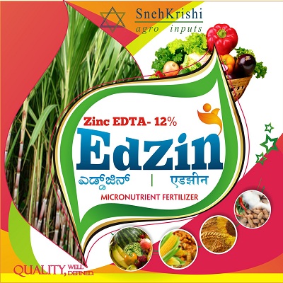 EdZin is a completely chelated water soluble product for foliar application containing EDTA Zinc-12%